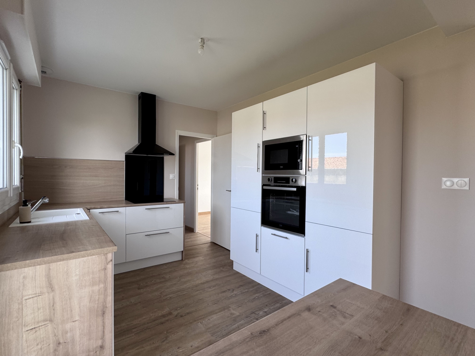 Une cuisine ouverte moderne, entièrement aménagée et équipée (neuve !).