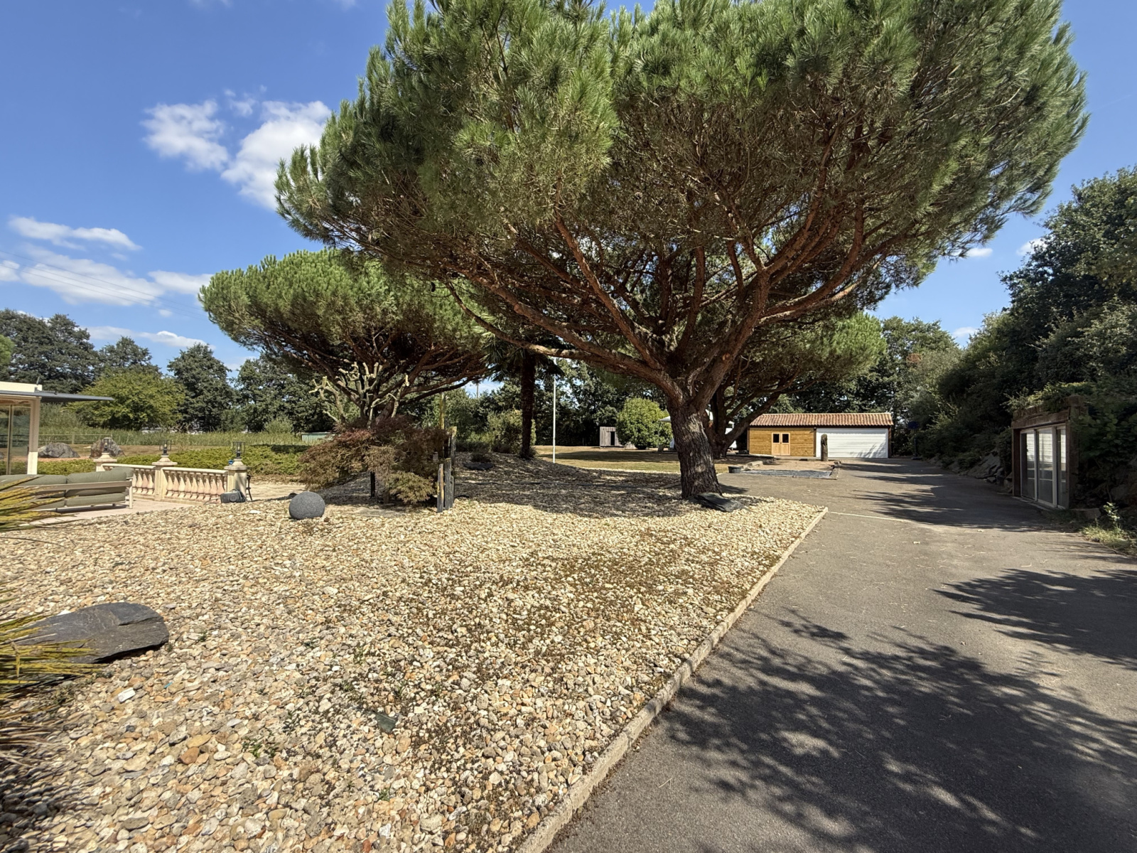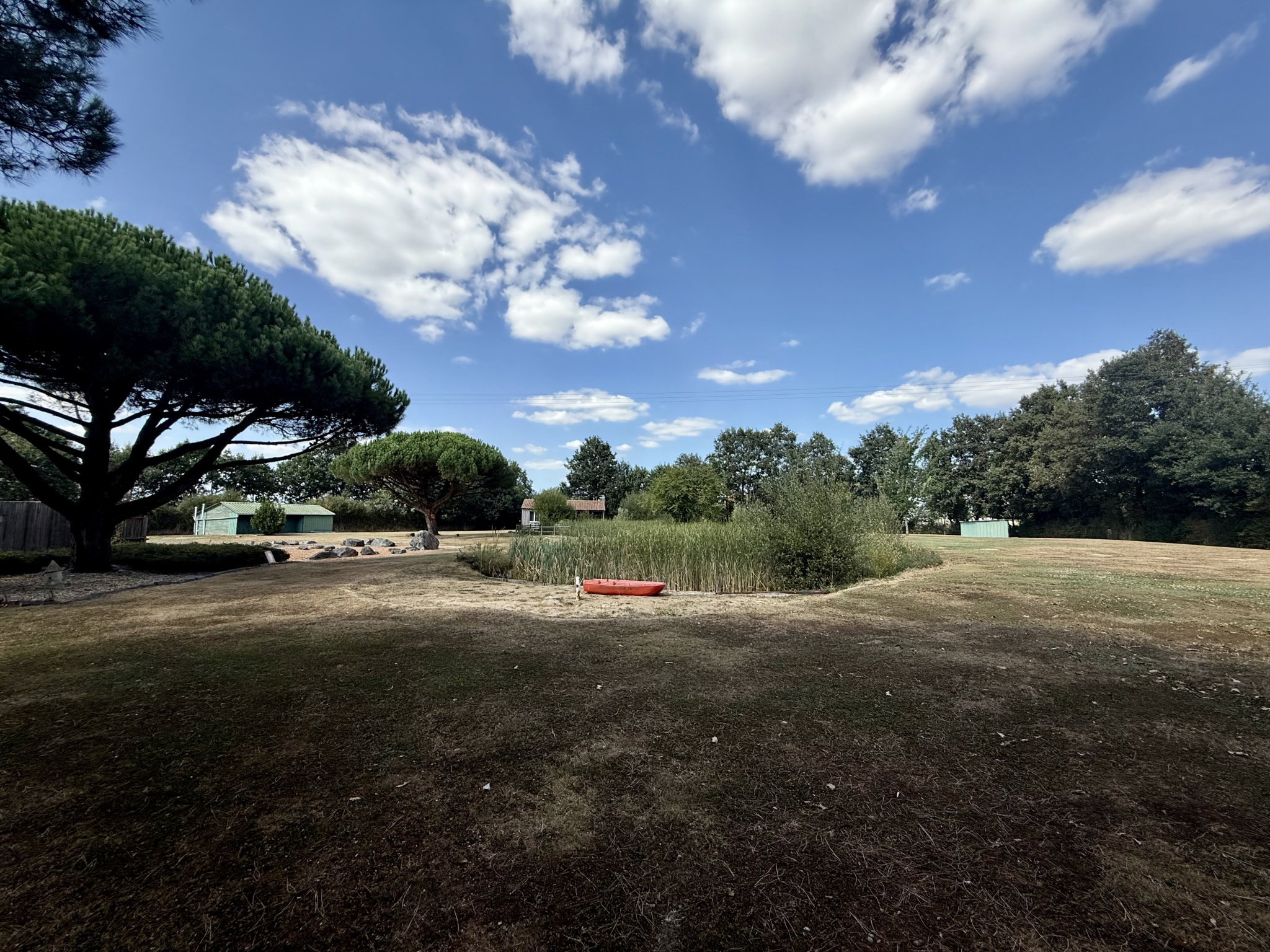 Cette propriété est également dotée de nombreuses dépendances pour vos véhicules et vos projets, avec deux garages, abris et un atelier.