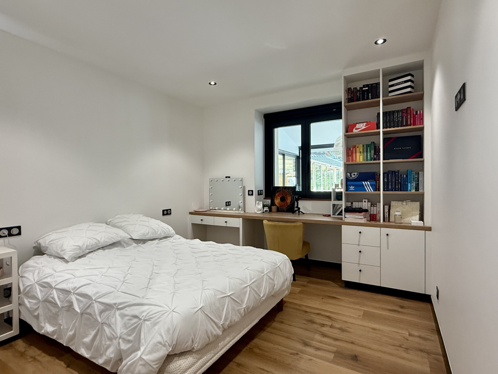 La suite parentale de 56 m² est un espace de détente absolu. Elle offre une chambre avec vue sur la piscine, un bureau, un dressing complet et une salle de bains privative. Pour vos proches, trois autres suites complètes, chacune avec rangements sur mesure et salle d'eau privative, garantissent confort et intimité.