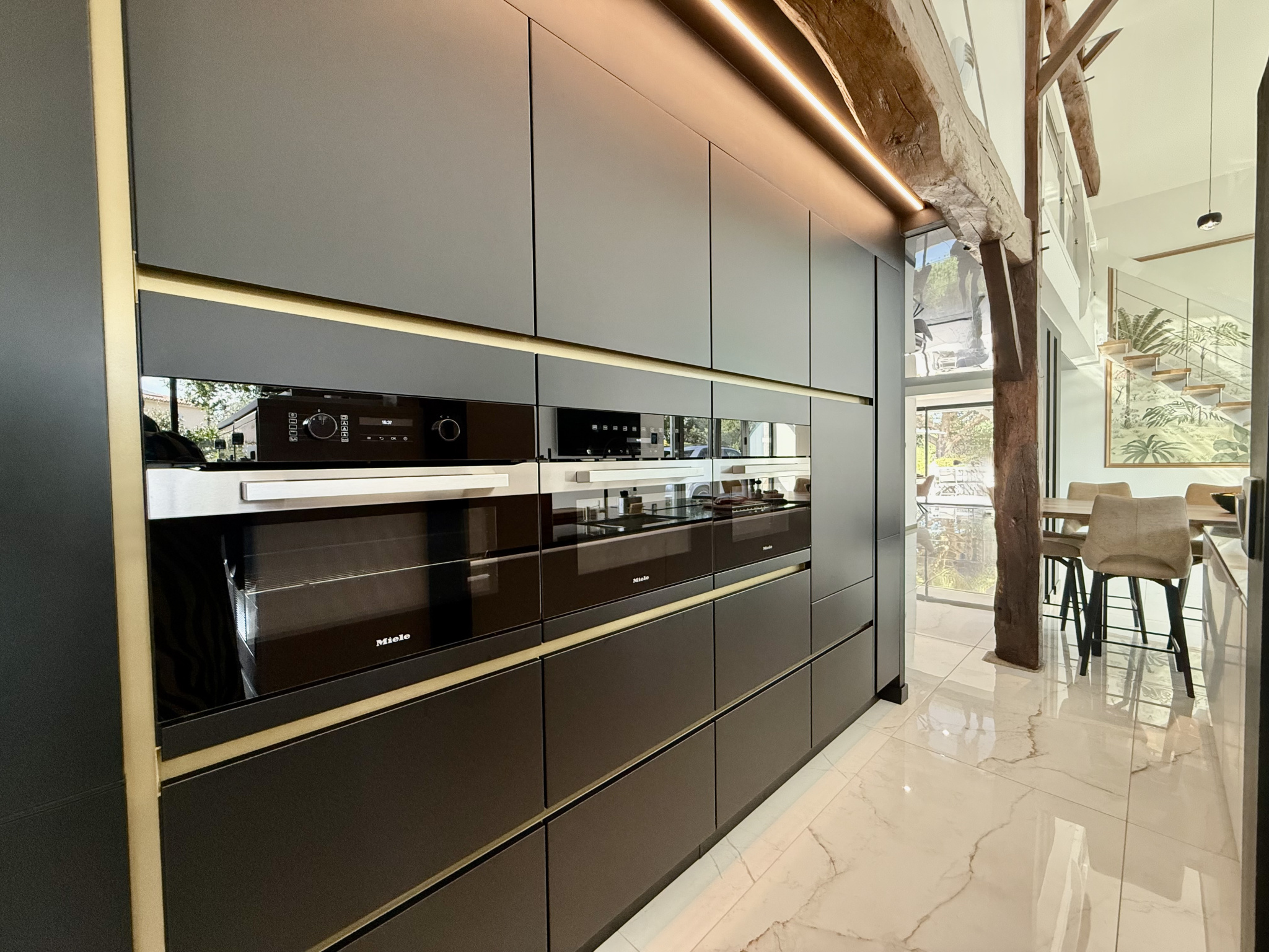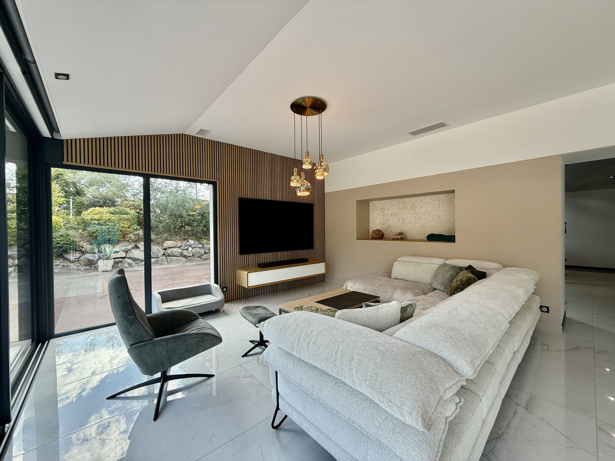 Menuiseries en aluminium avec verres anti-effraction et contrôle solaire.
