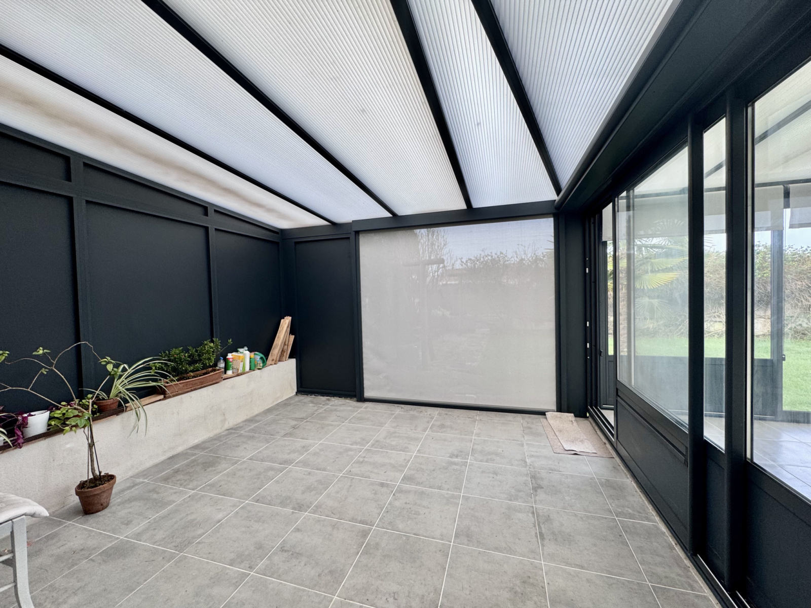 70 m² de surfaces utiles : Un garage traversant avec porte motorisée et faux grenier, un jardin d'hiver avec store et une magnifique véranda de 21 m² pour profiter de l'extérieur en toute saison.