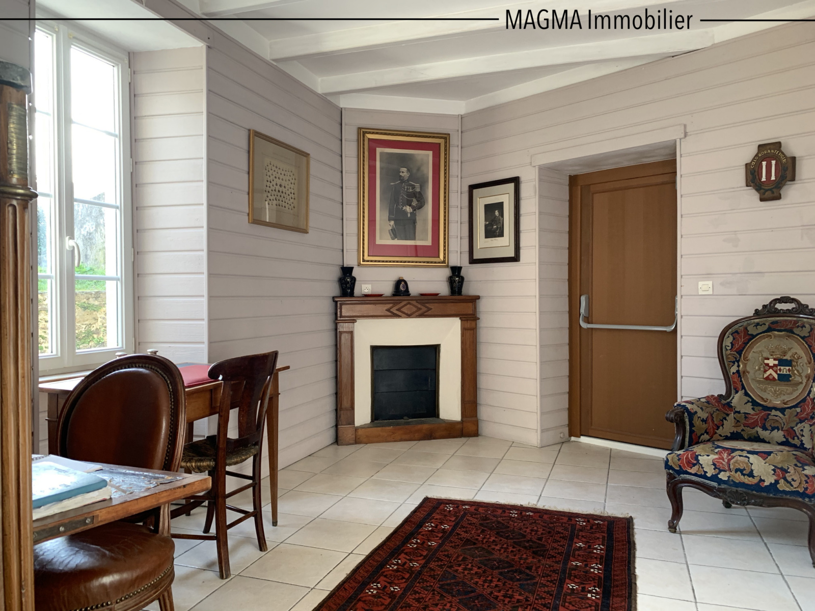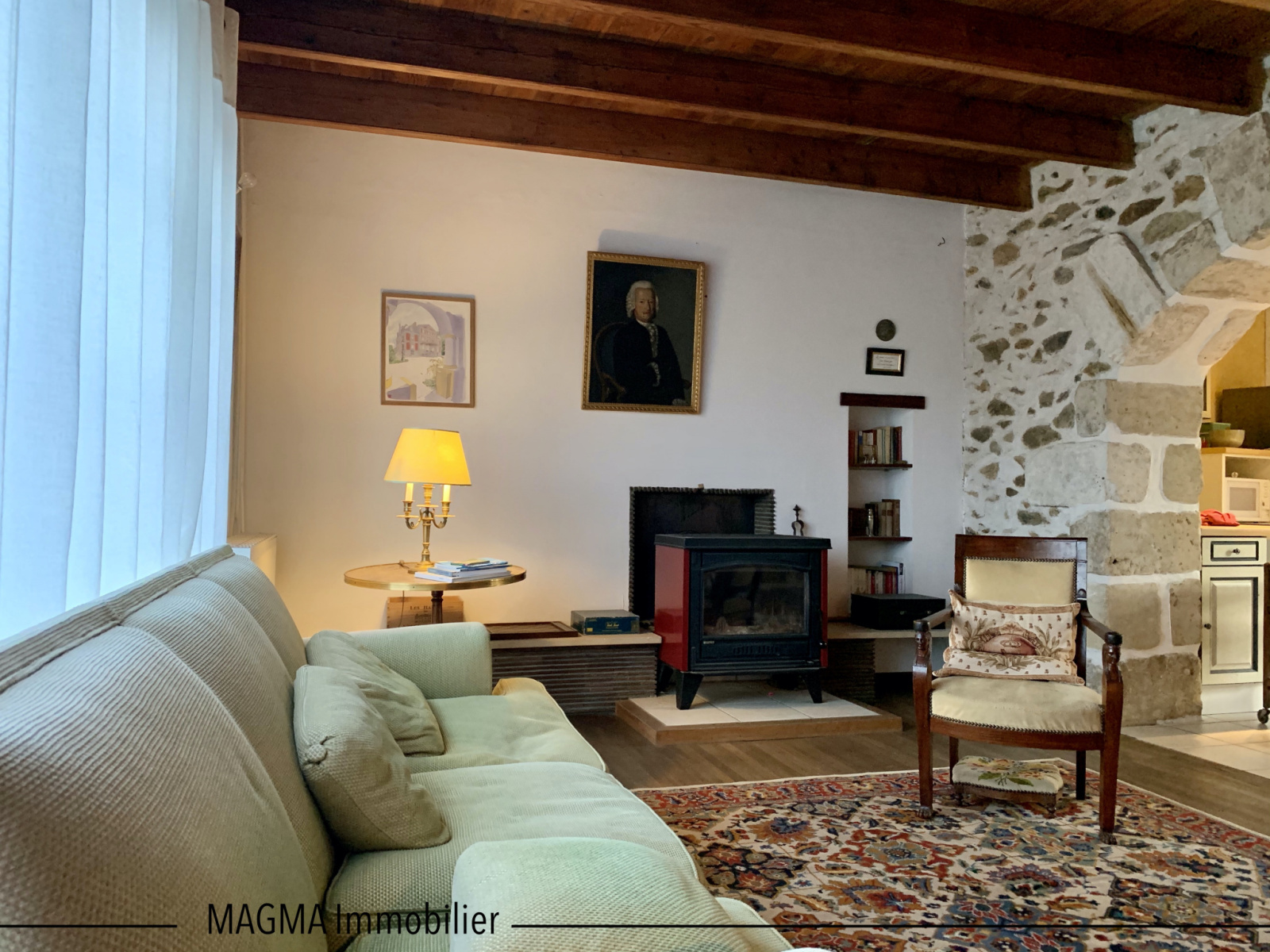 Cette maison est composée de beaux espaces de vie intimistes, d’un beau salon sur parquet avec poêle à bois, et d’une pièce repas séparée et ouverte sur la terrasse.