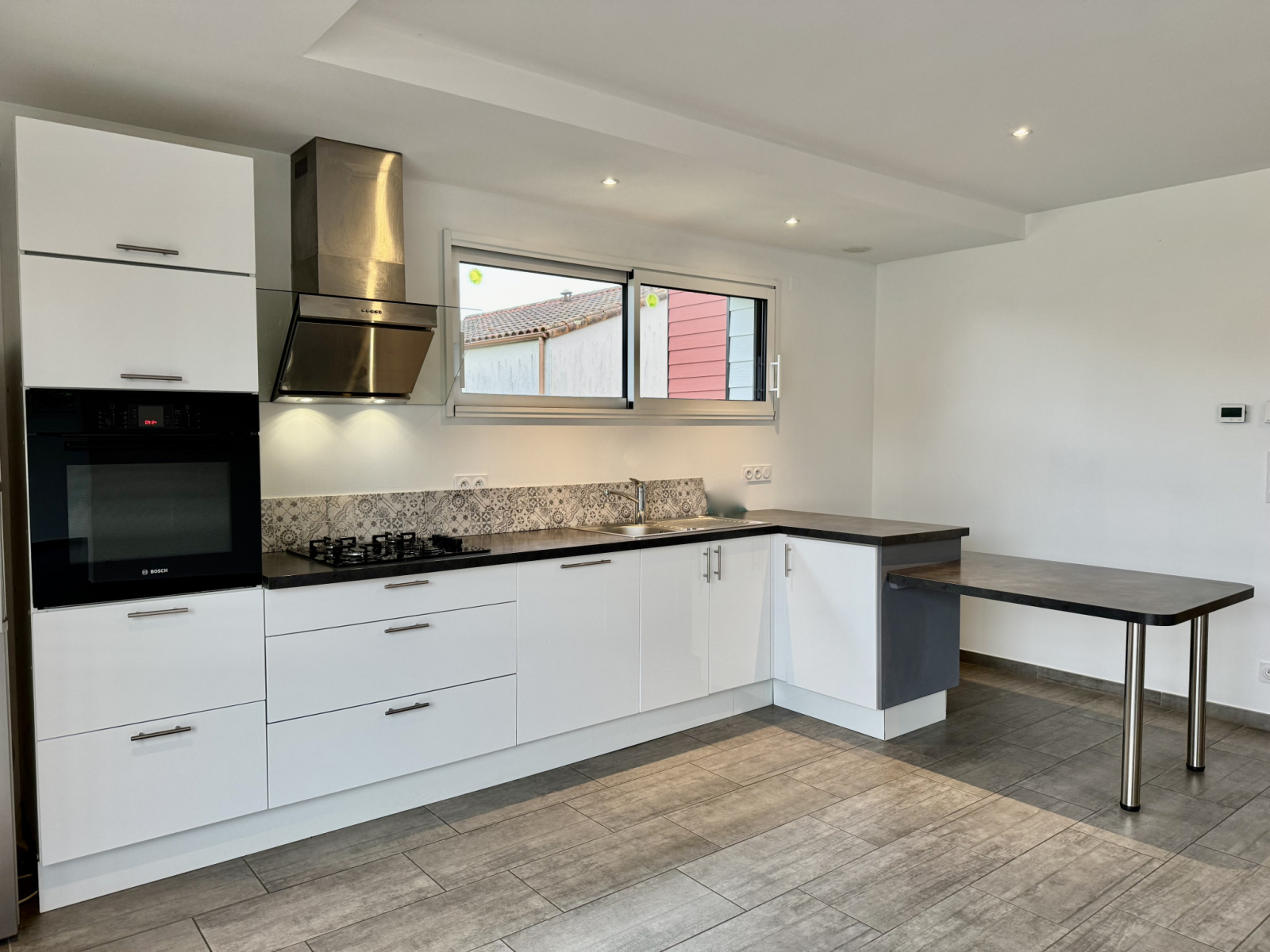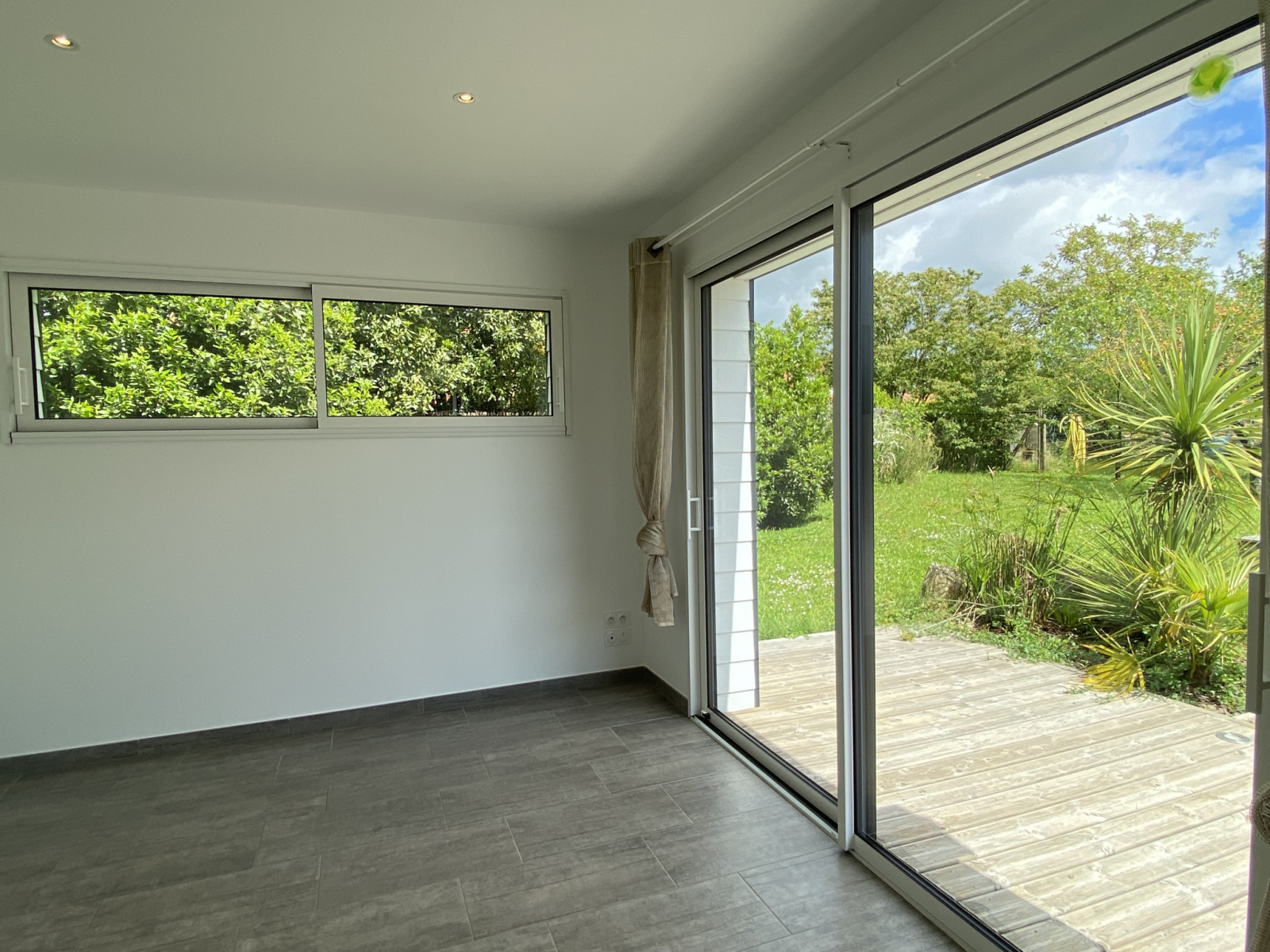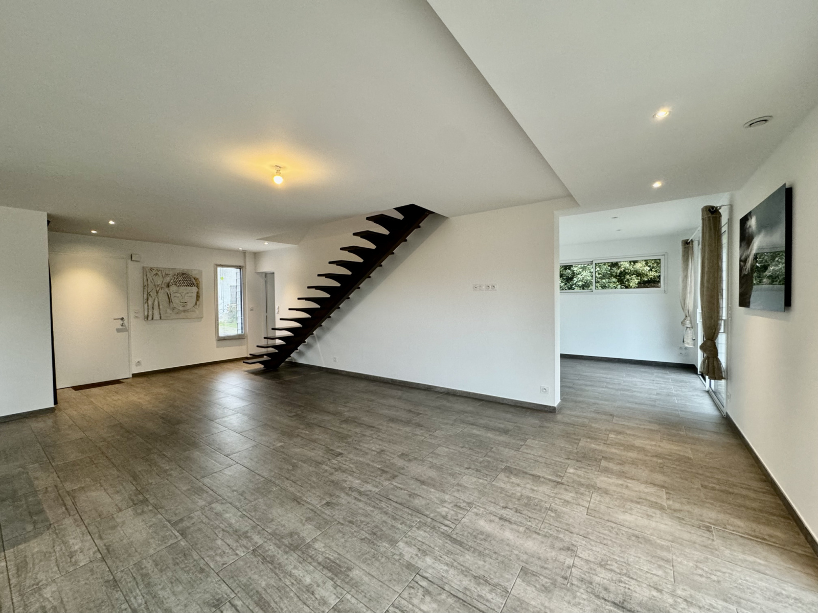Au rez de chaussée elle offre un vaste espace de vie tourné vers le jardin et la grande terrasse, la partie cuisine est aménagée et semi-équipée.