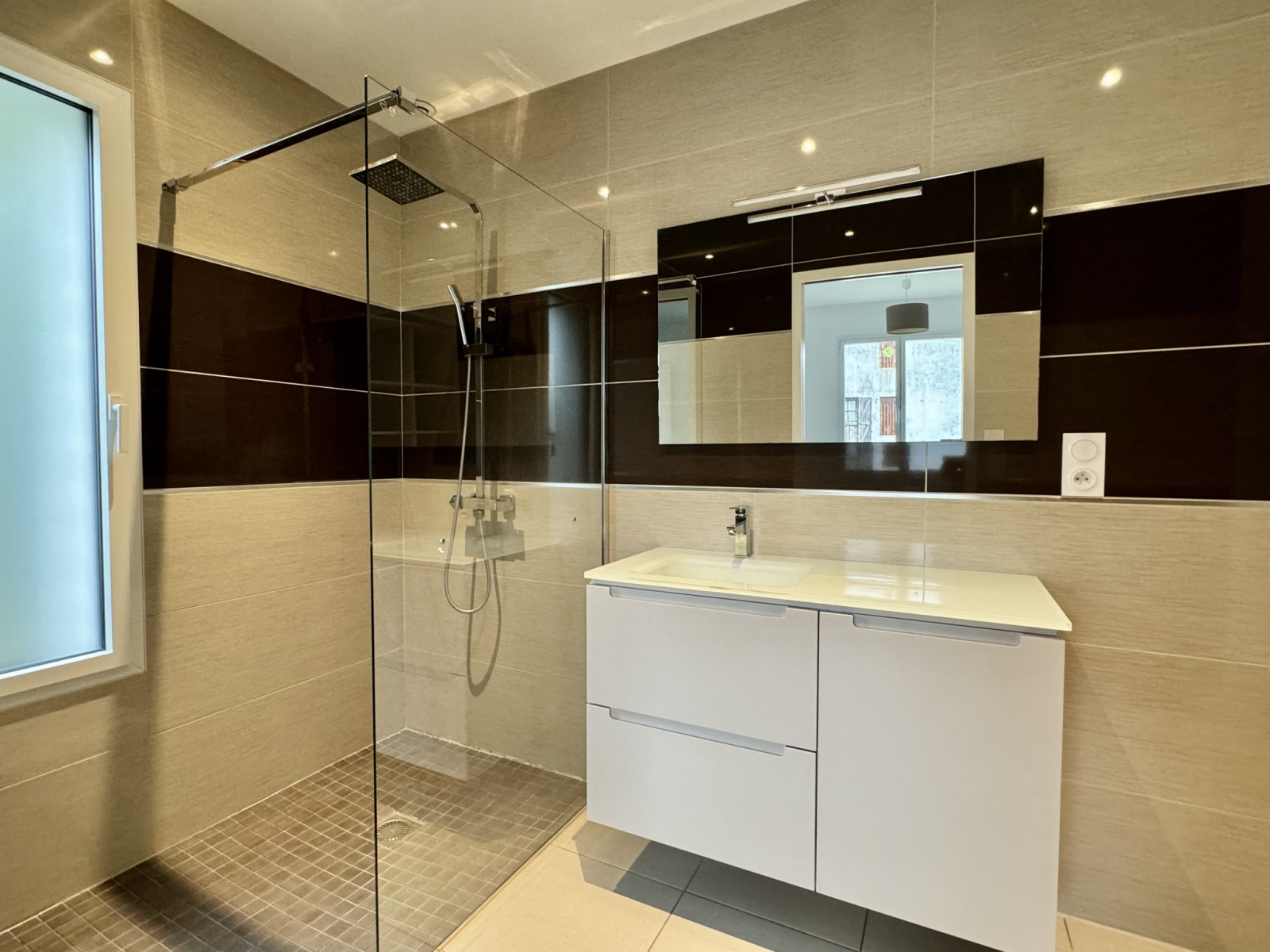 -Chauffage au sol par pompe à chaleur, ouvrants en aluminium bicolores double vitrage avec volets roulants motorisés, vmc double flux, porte de garage électrique....