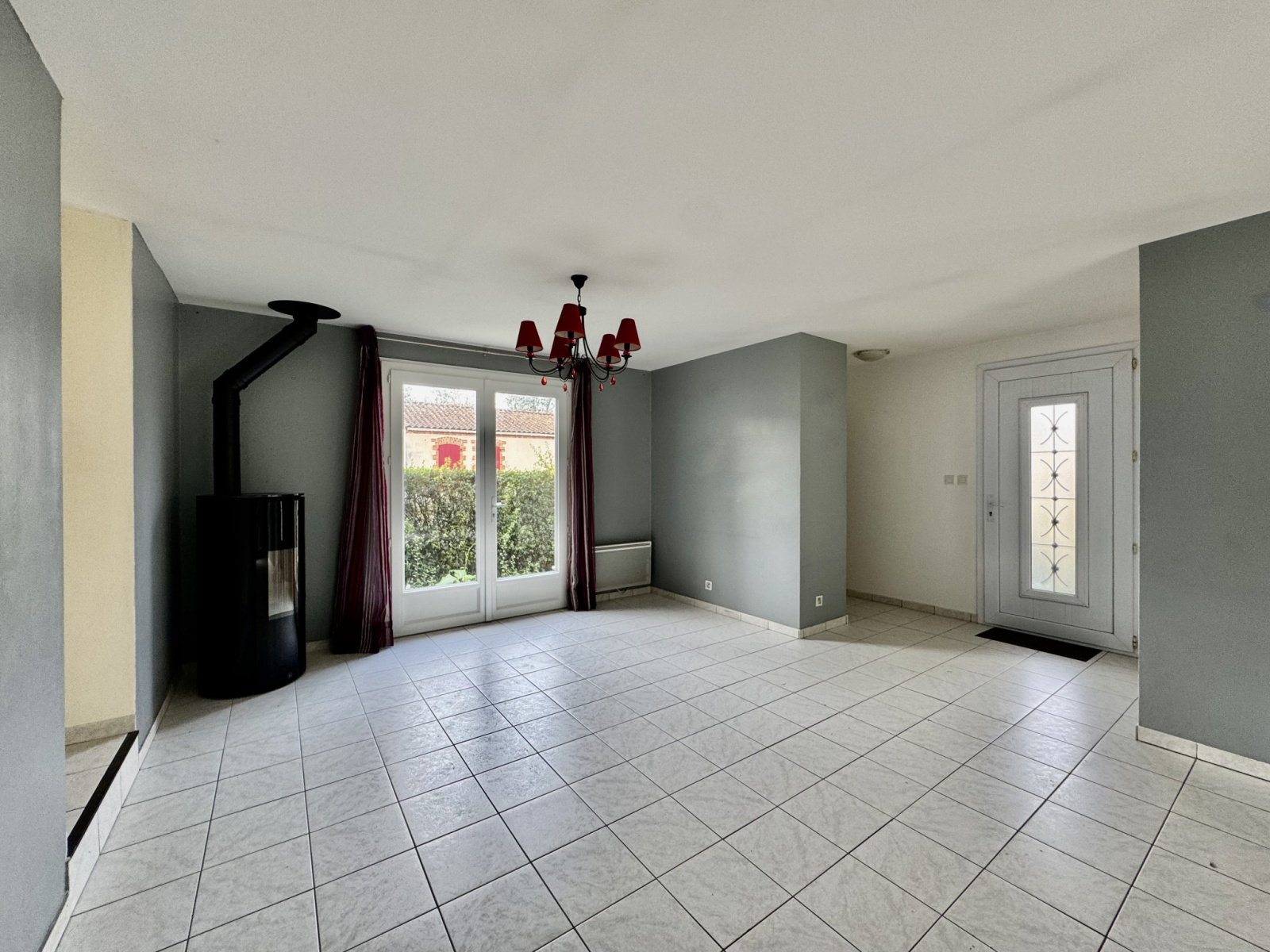 Un salon-séjour traversant de 30 m2 pour des moments conviviaux, chauffé par un poêle à granulés Récent !