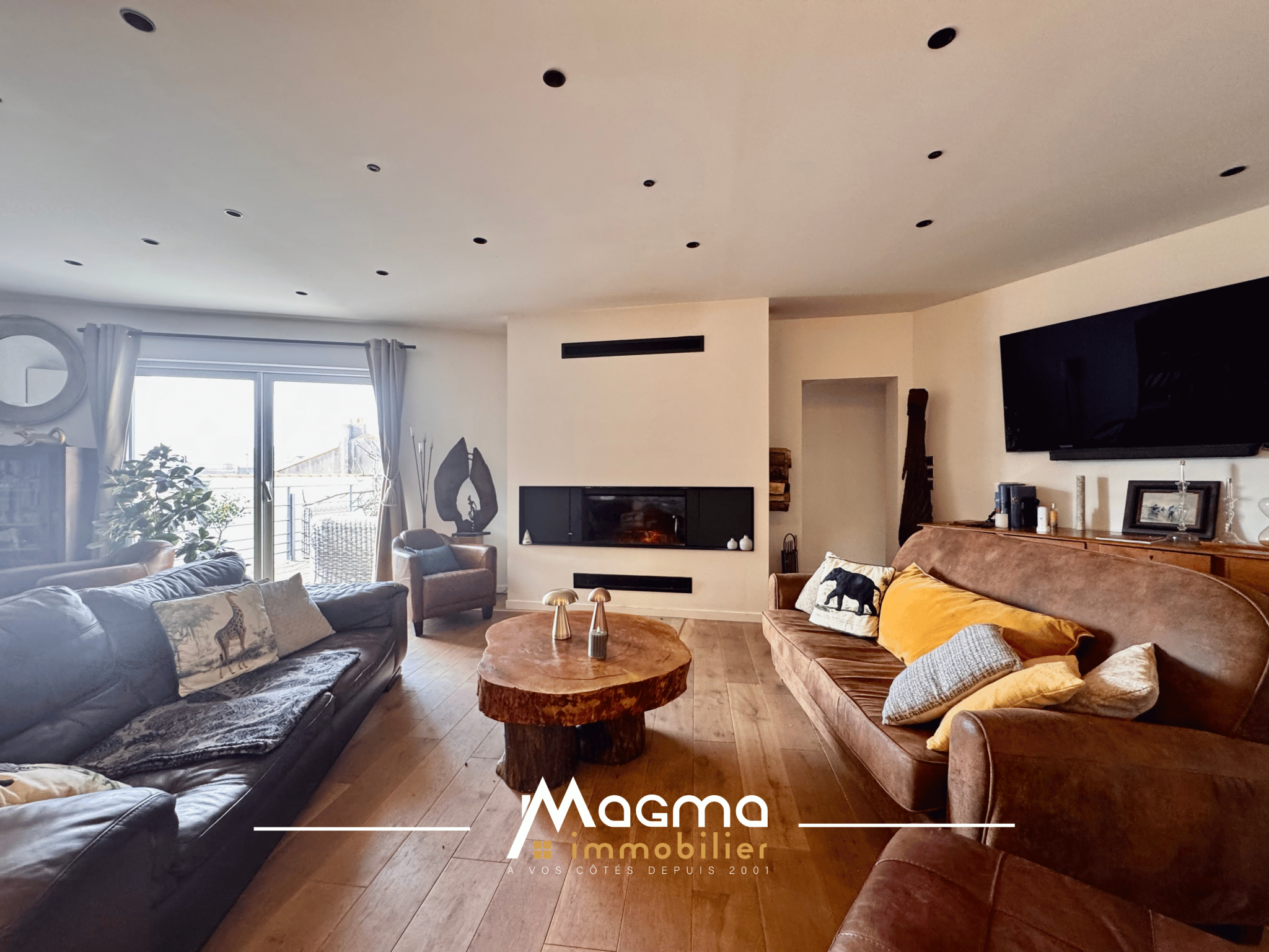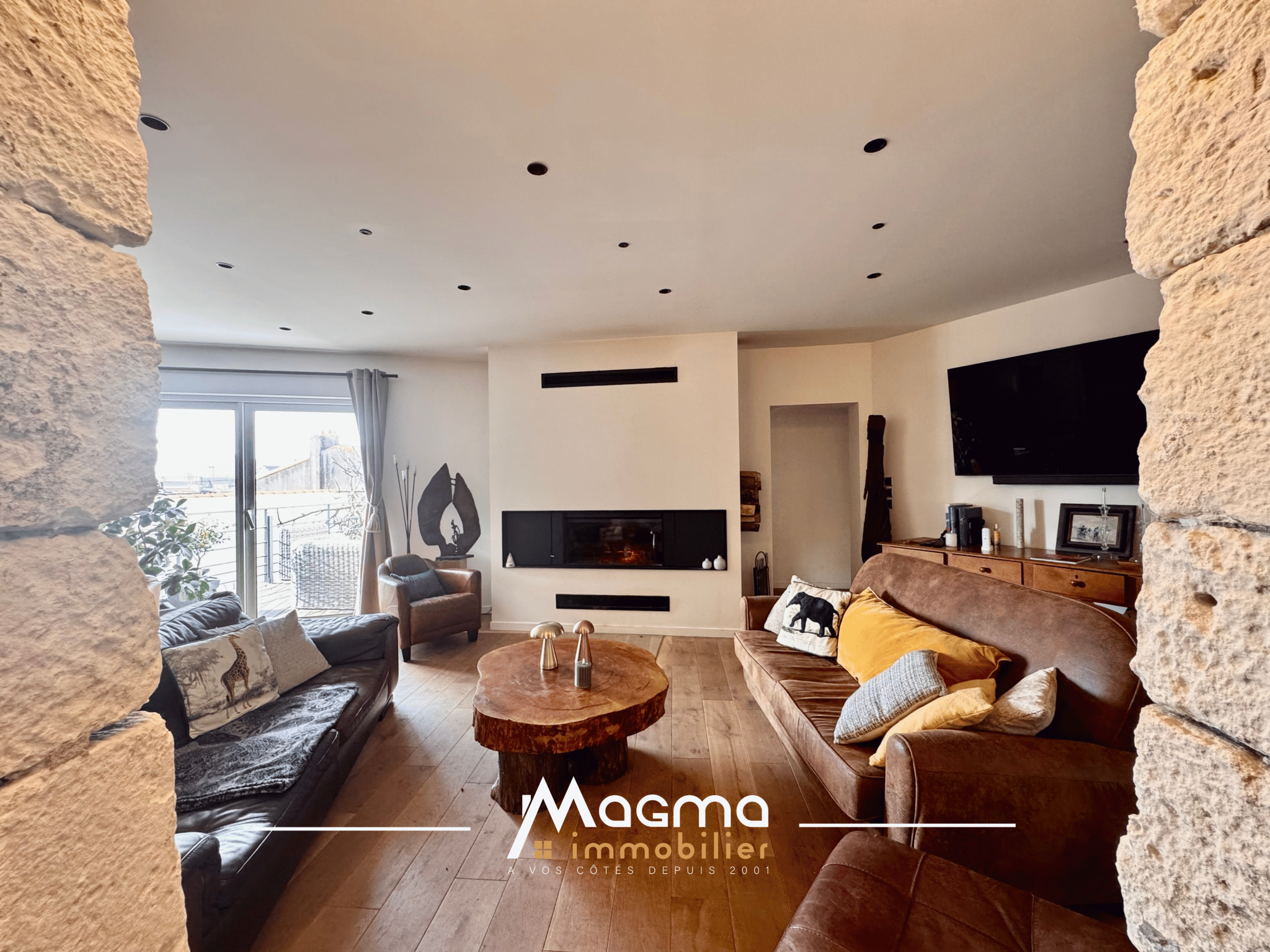 Le Cœur de Vie : Les murs de pierres ancestrales battent au centre de la maison. La pièce de vie, chaleureuse et élégante, s’articule autour de ce noyau historique. Son salon sur parquet, agrémenté d’un insert à bois, invite à la sérénité. Grâce à une baie à galandage, l’intérieur se prolonge vers une terrasse de caractère.
