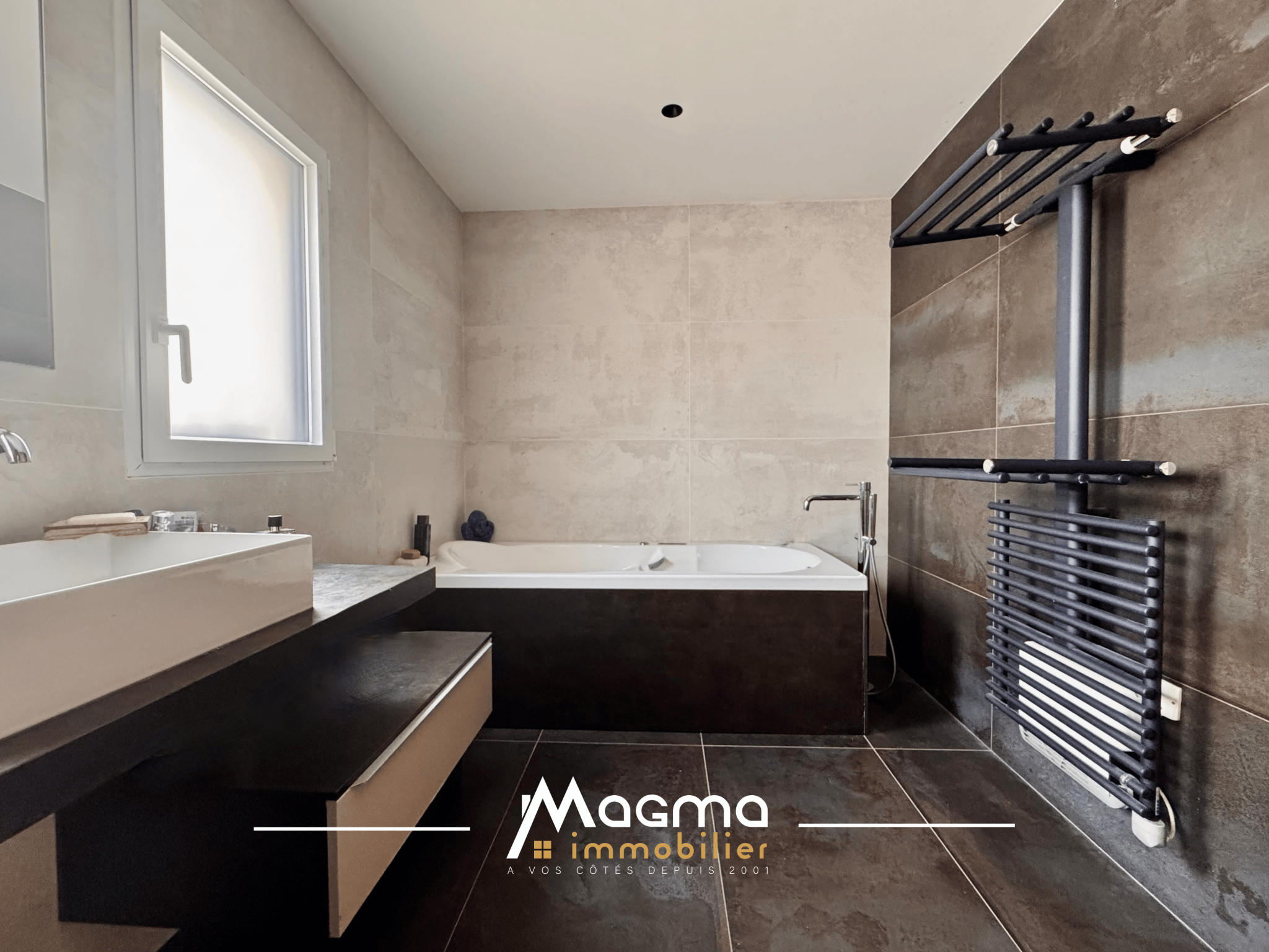 Détente et Volupté : À l'extérieur, une magnifique terrasse en travertin accueille un grand spa couvert. Totalement à l'abri des regards et sans aucun vis-à-vis, cet espace bien-être devient votre sanctuaire privé en plein air.