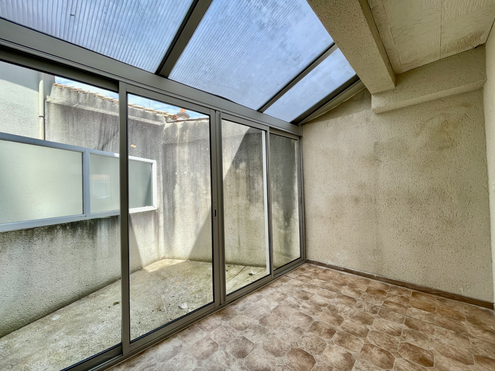 Situé au rez-de-chaussée d'une petite copropriété de 4 logements, il dispose d'une pièce de vie exposée sud avec accès à la première terrasse, une cuisine équipée-aménagée. Dans le prolongement, vous avez la possiblité de profiter d'une véranda et d'une seconde terrasse.