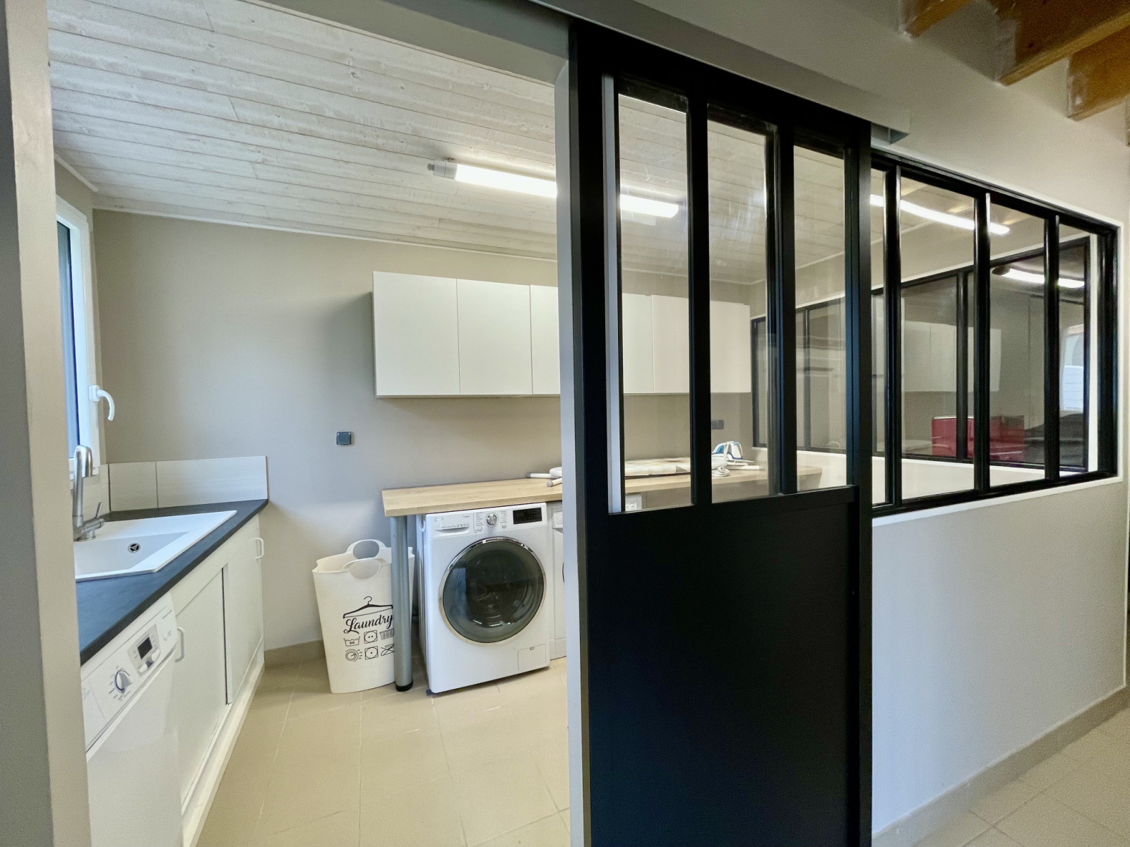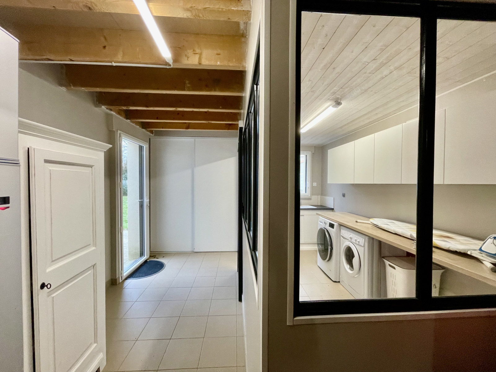 N'oublions pas la garage carrelé, isolé avec sa porte motorisée, son faux grenier sur la totalité de la superficie et ses placards. Un cellier de 9m2 avec évier, rangements et branchements machines est également à votre disposition..