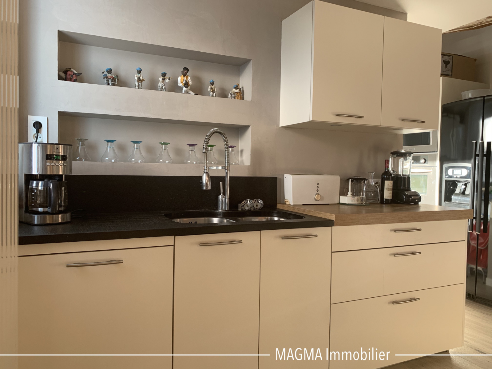 Vous apprécierez particulièrement ses beaux espaces de vie aussi bien intérieurs qu’extérieurs, sa cuisine ouverte entièrement équipée et les volumes de chaque pièce.