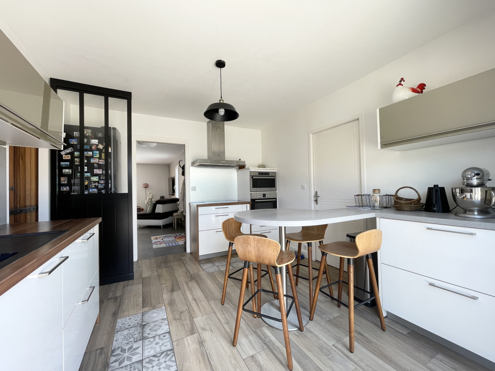 La cuisine aussi jolie que pratique est totalement aménagée et équipée. Deux suites parentales complètent ce rez de chaussée :
