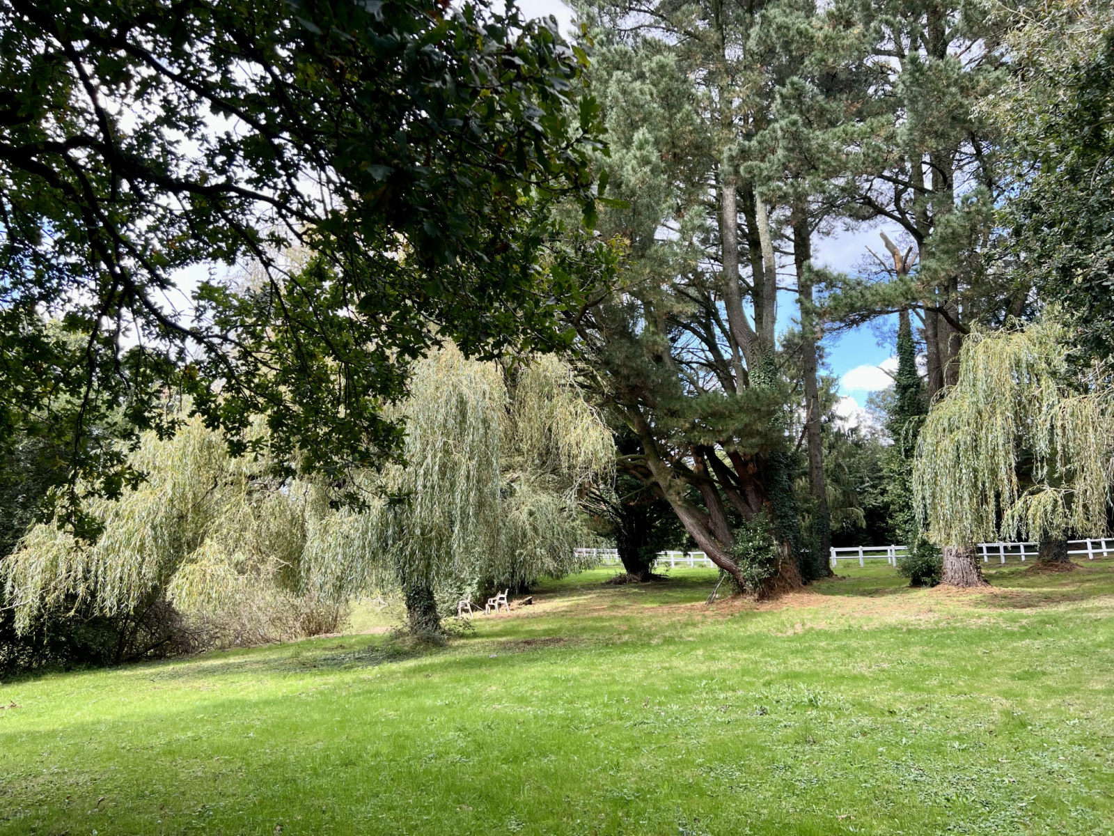 Elle dispose d'un vaste terrain arboré car il fait très exactement 11.541 m2, certains arbres sont centenaires et sa magnifique pièce d'eau est alimentée par une source.